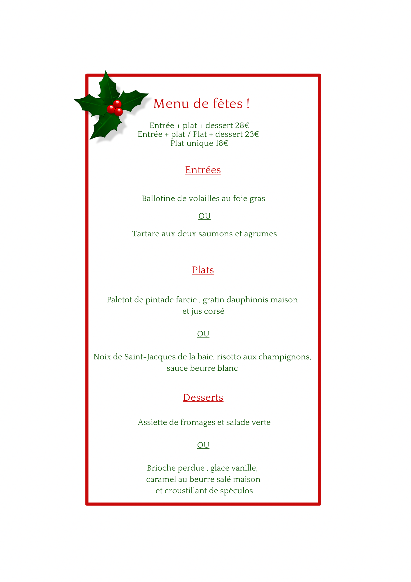 CALL +33256110296L’abondance est un lieu chaleureux où la passion du goût rencontre la convivialité. Nous vous proposons une cuisine généreuse, faite maison, à base de produits frais et de saison. Que ce soit pour un déjeuner entre amis, un dîner en famille ou une occasion spéciale, notre équipe vous accueille dans une ambiance authentique et gourmande !