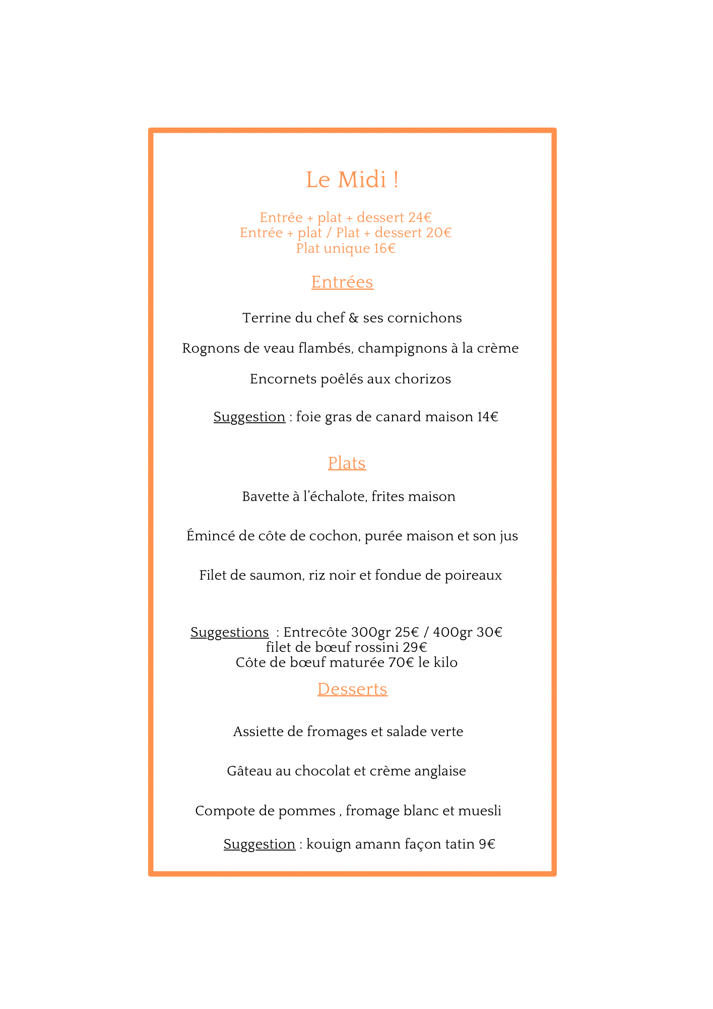 APPELER +33256110296L’abondance est un lieu chaleureux où la passion du goût rencontre la convivialité. Nous vous proposons une cuisine généreuse, faite maison, à base de produits frais et de saison. Que ce soit pour un déjeuner entre amis, un dîner en famille ou une occasion spéciale, notre équipe vous accueille dans une ambiance authentique et gourmande !